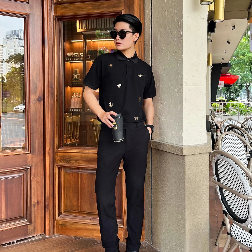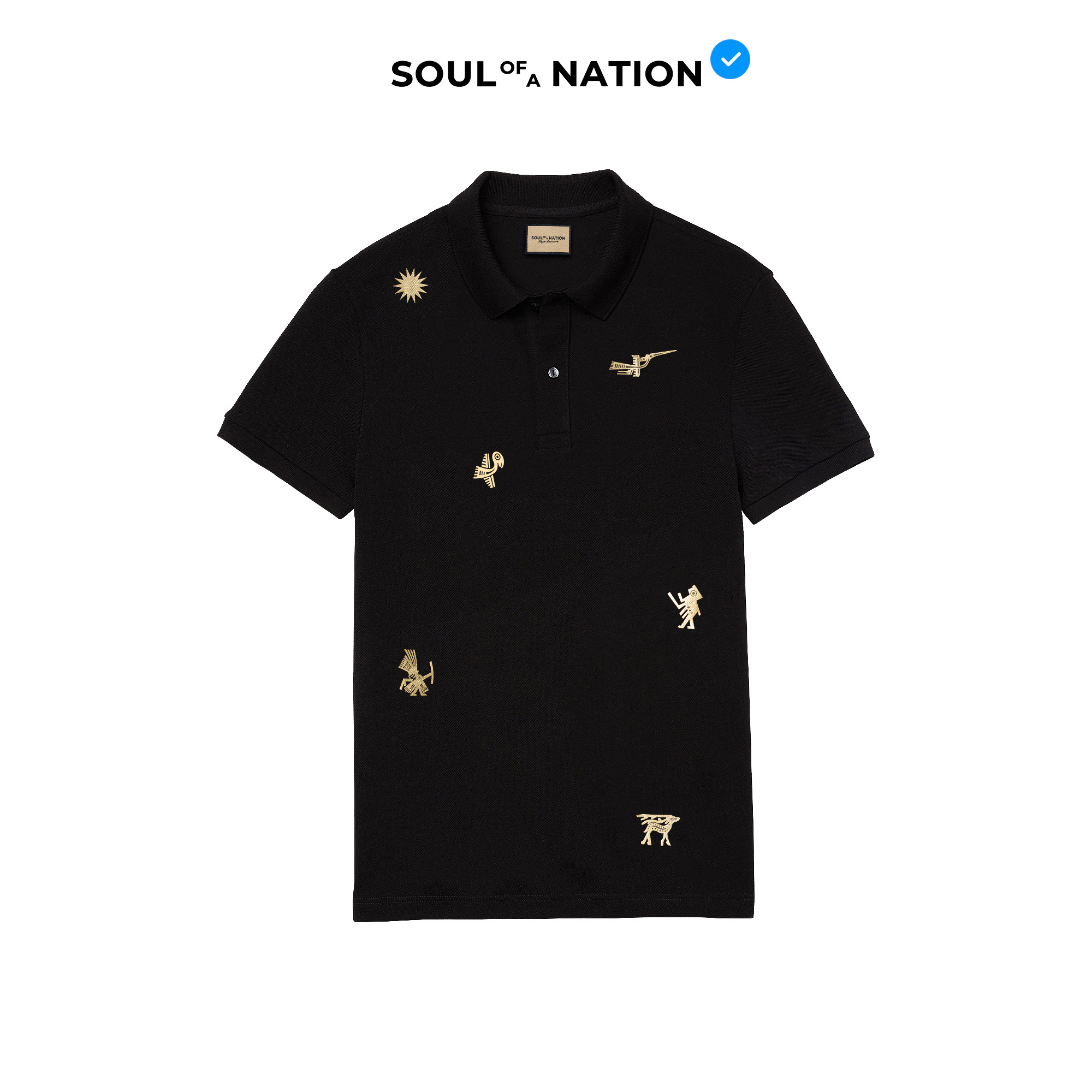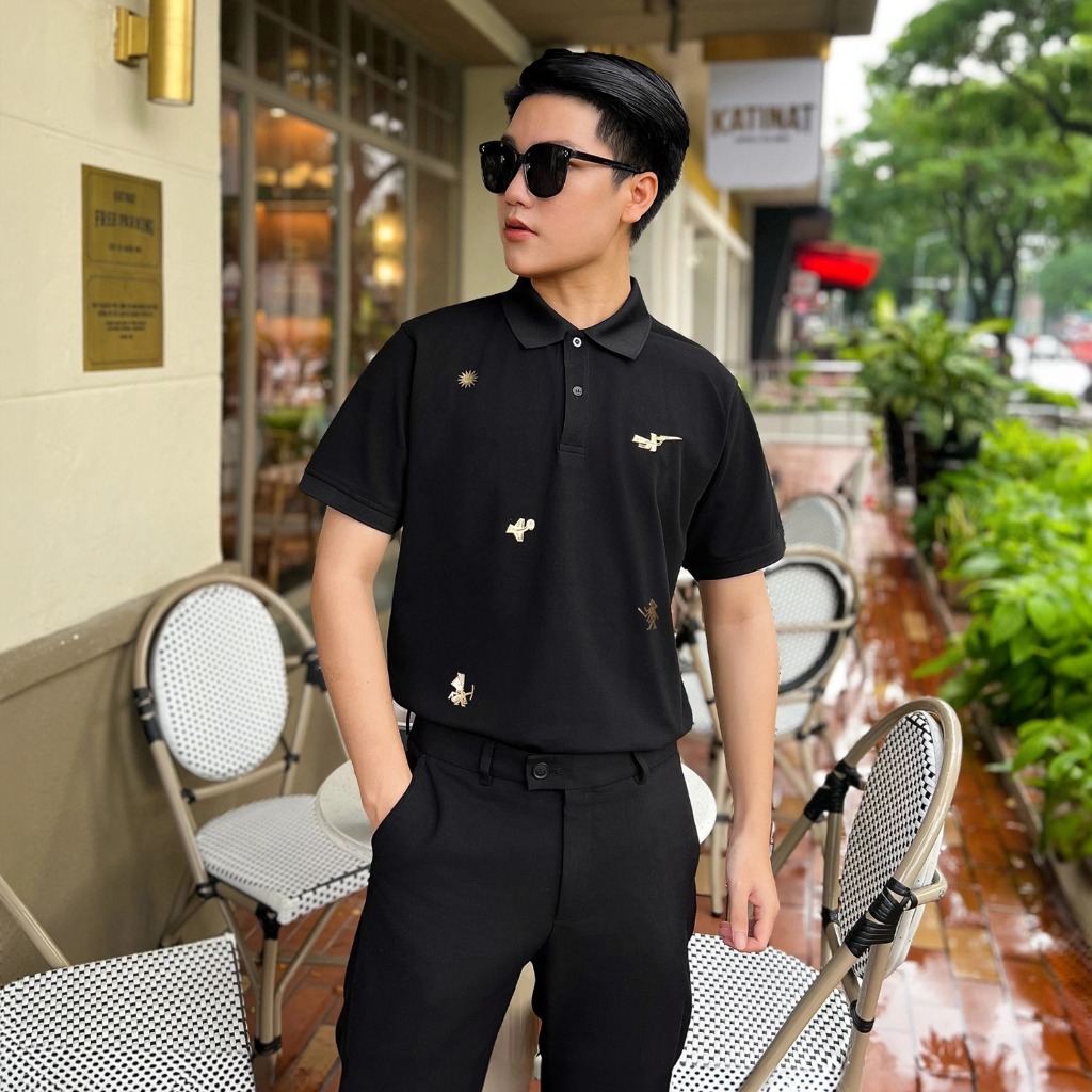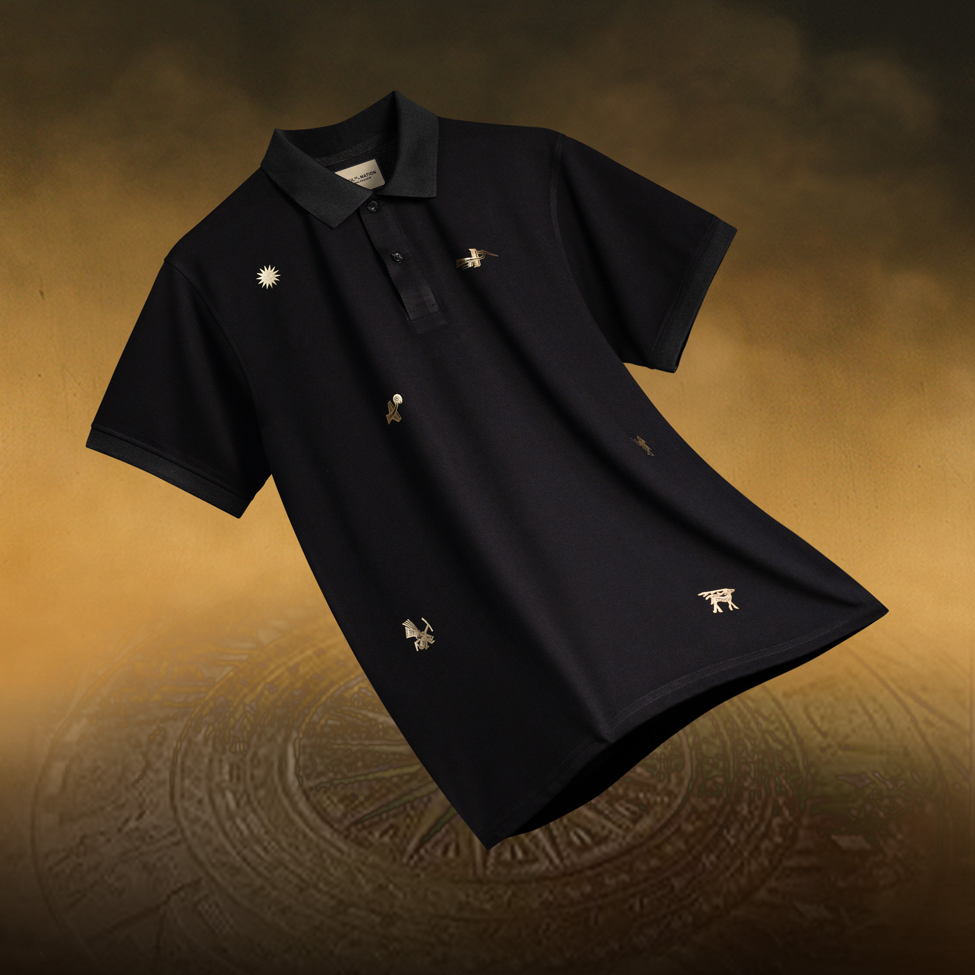 Áo Polo - Pattern Chim Lạc Trống Đồng Nhũ Vàng KHUYẾN MÃI - ƯU ĐÃI