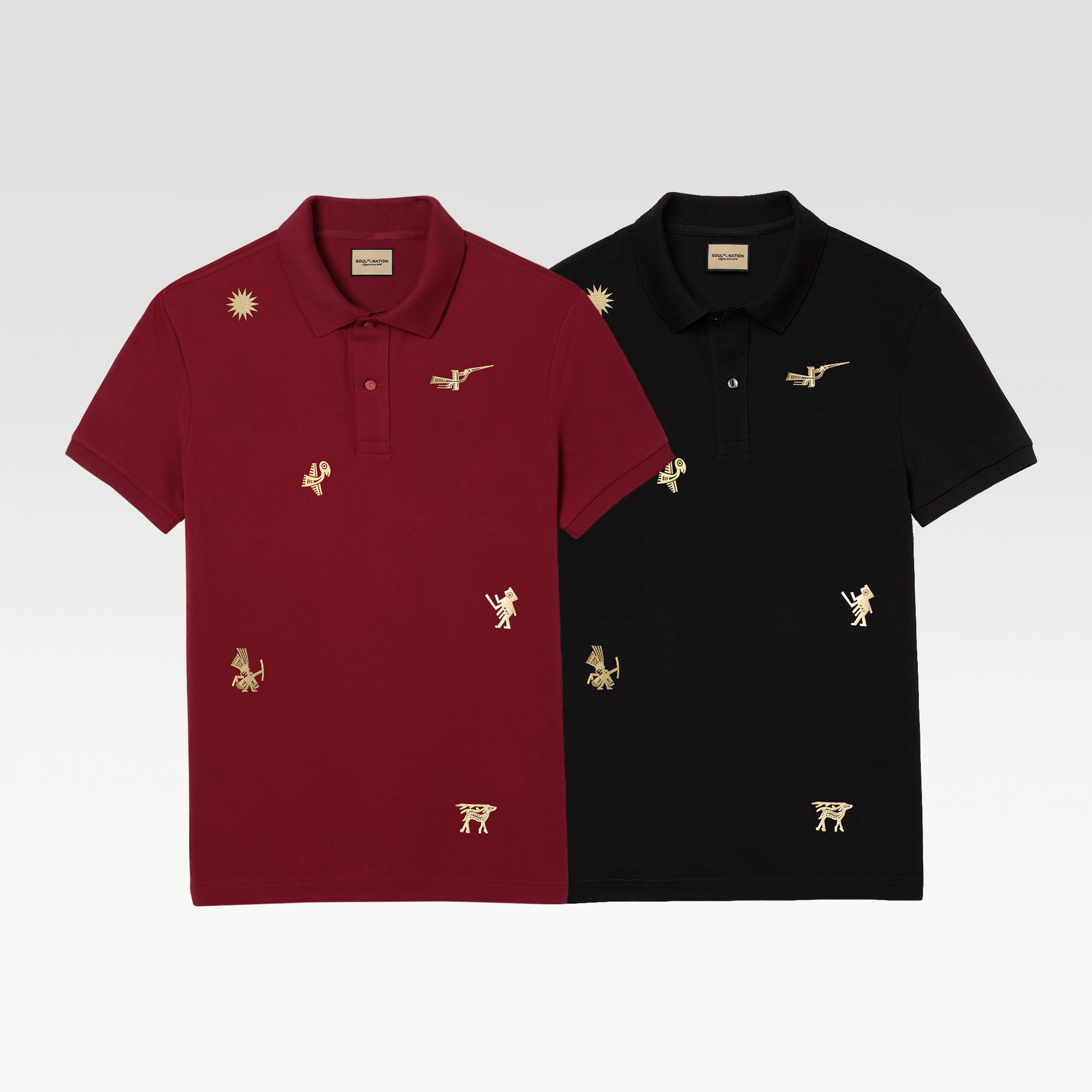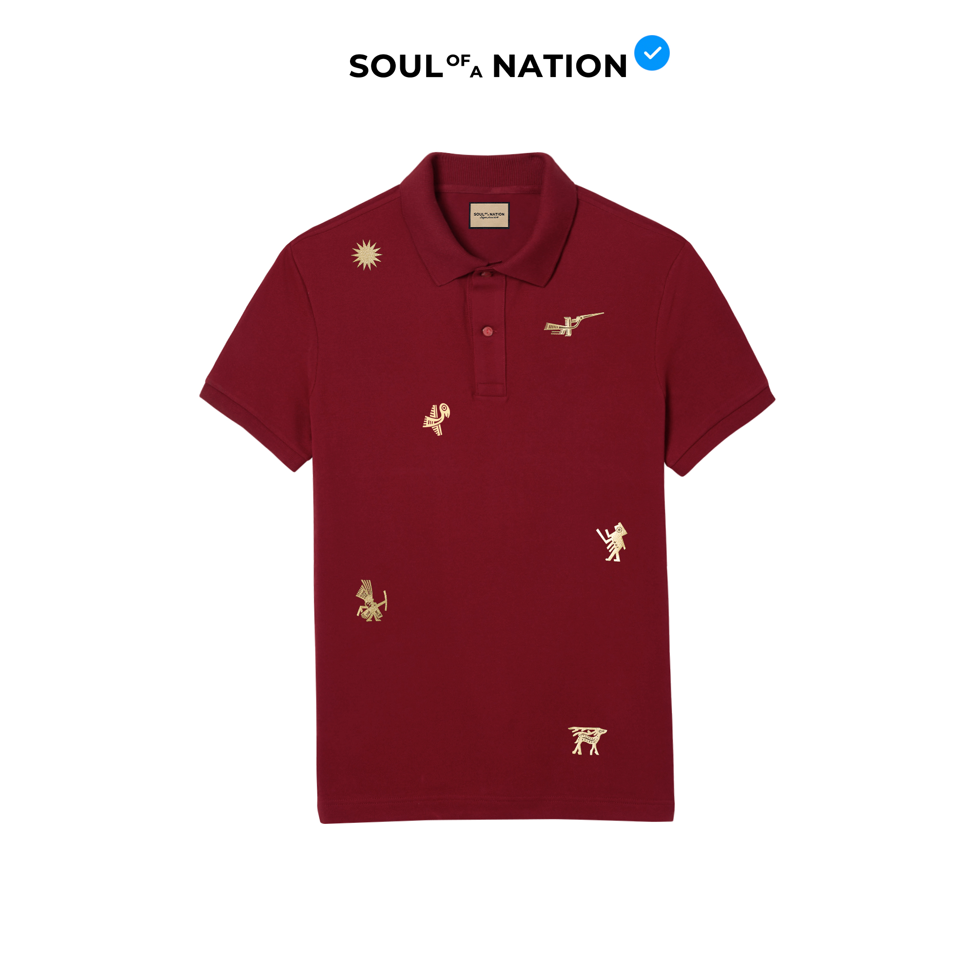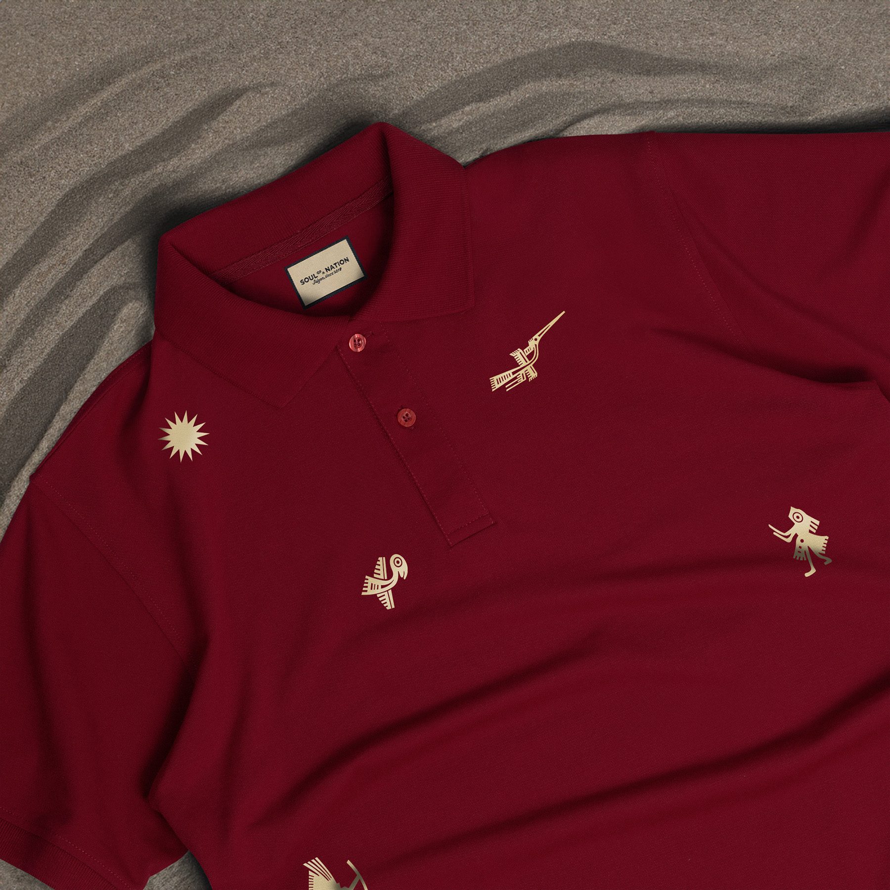 Áo Polo - Pattern Chim Lạc Trống Đồng Nhũ Vàng