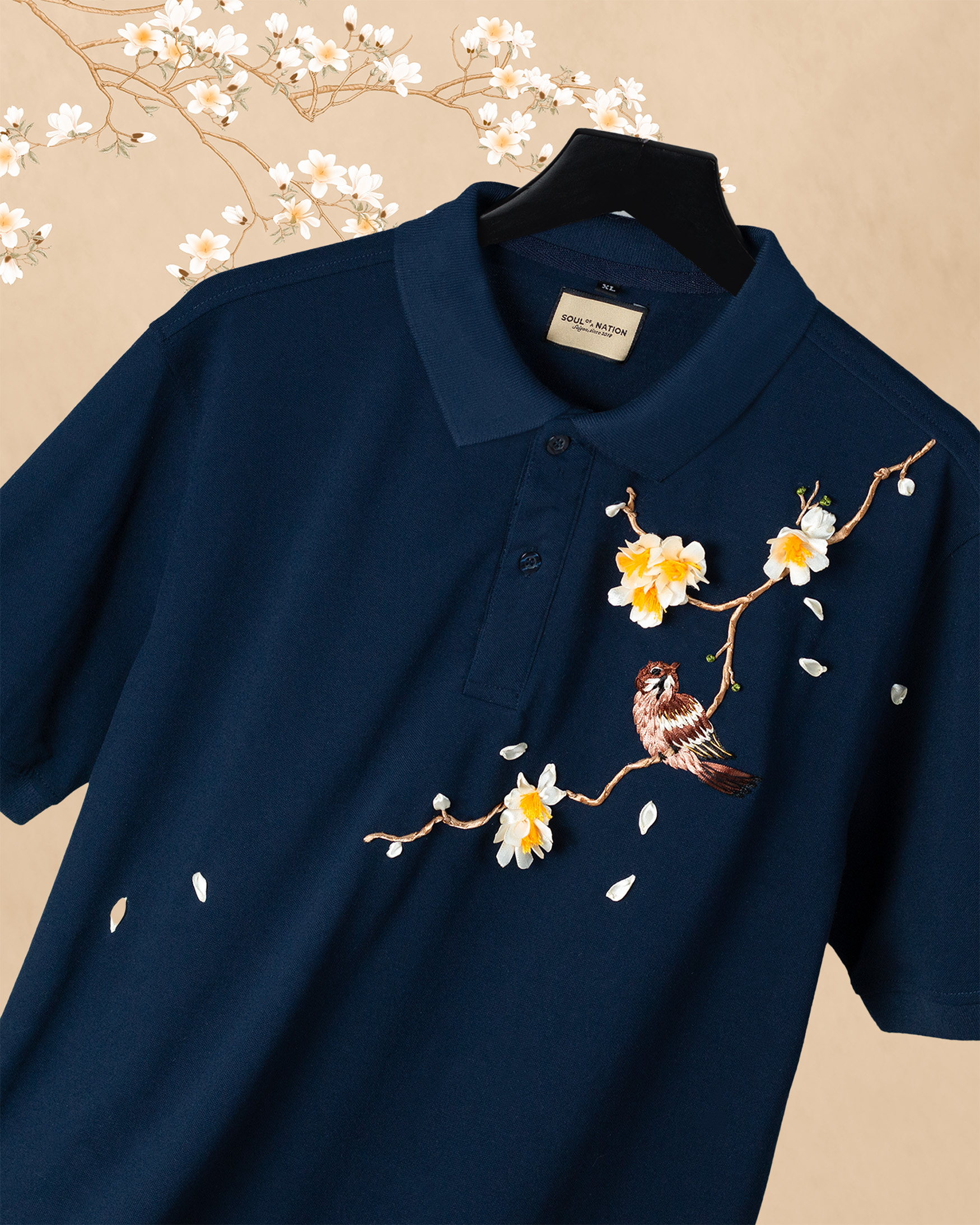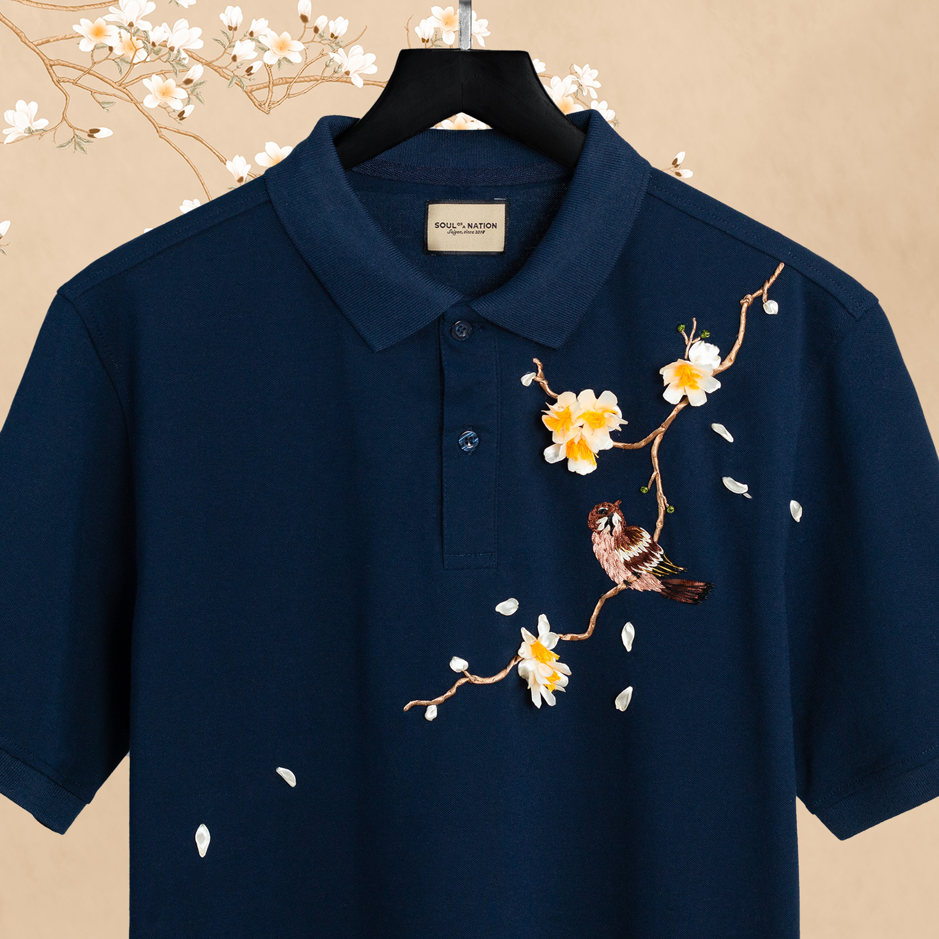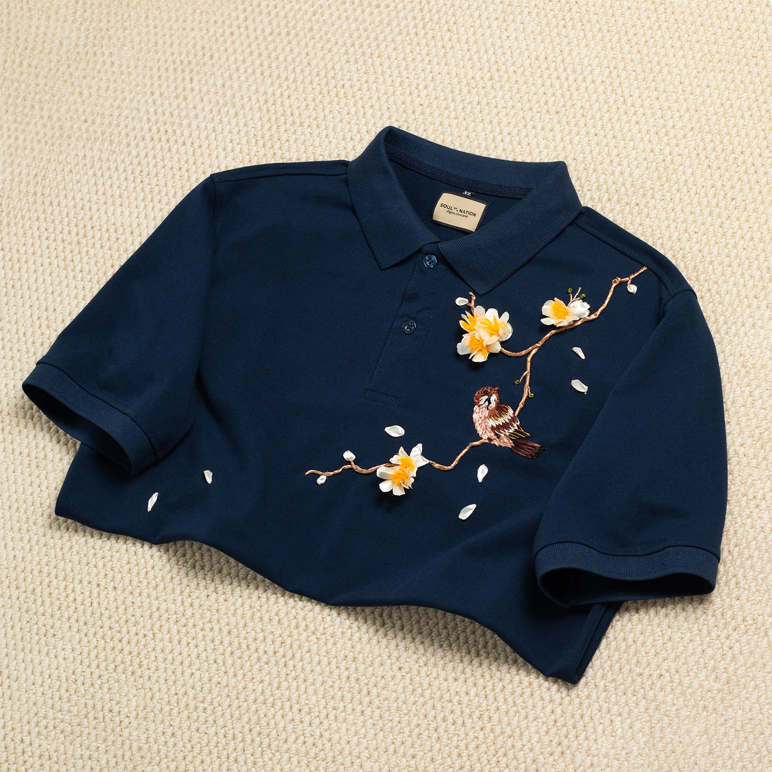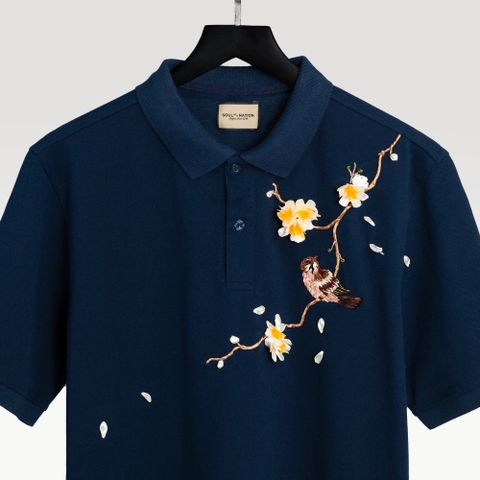 Áo Polo Thêu Ruy Băng Thủ Công - Chim Sẻ Nhành Mai 2025 Ưu đãi đặc biệt