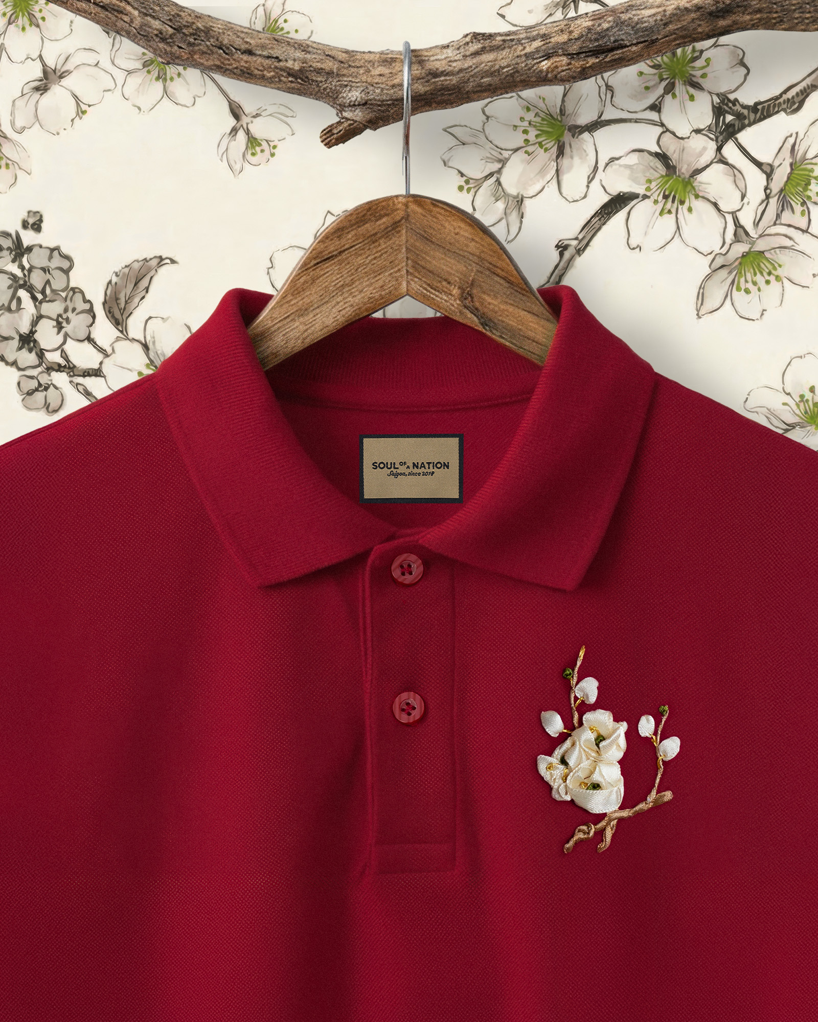 Áo Polo Thêu Ruy Băng Thủ Công - Mai Hoa Như Ý