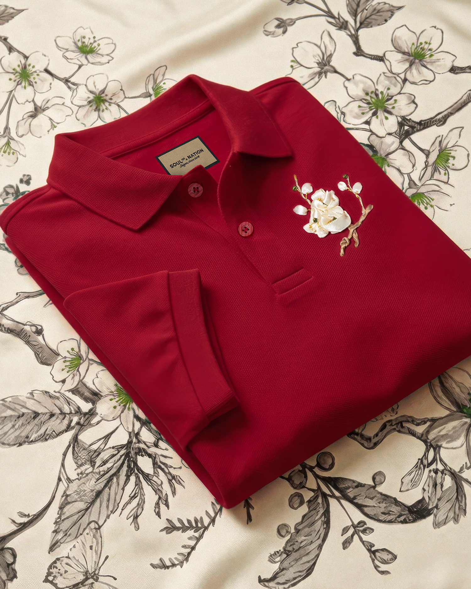 Áo Polo Thêu Ruy Băng Thủ Công - Mai Hoa Như Ý Ưu đãi đặc biệt