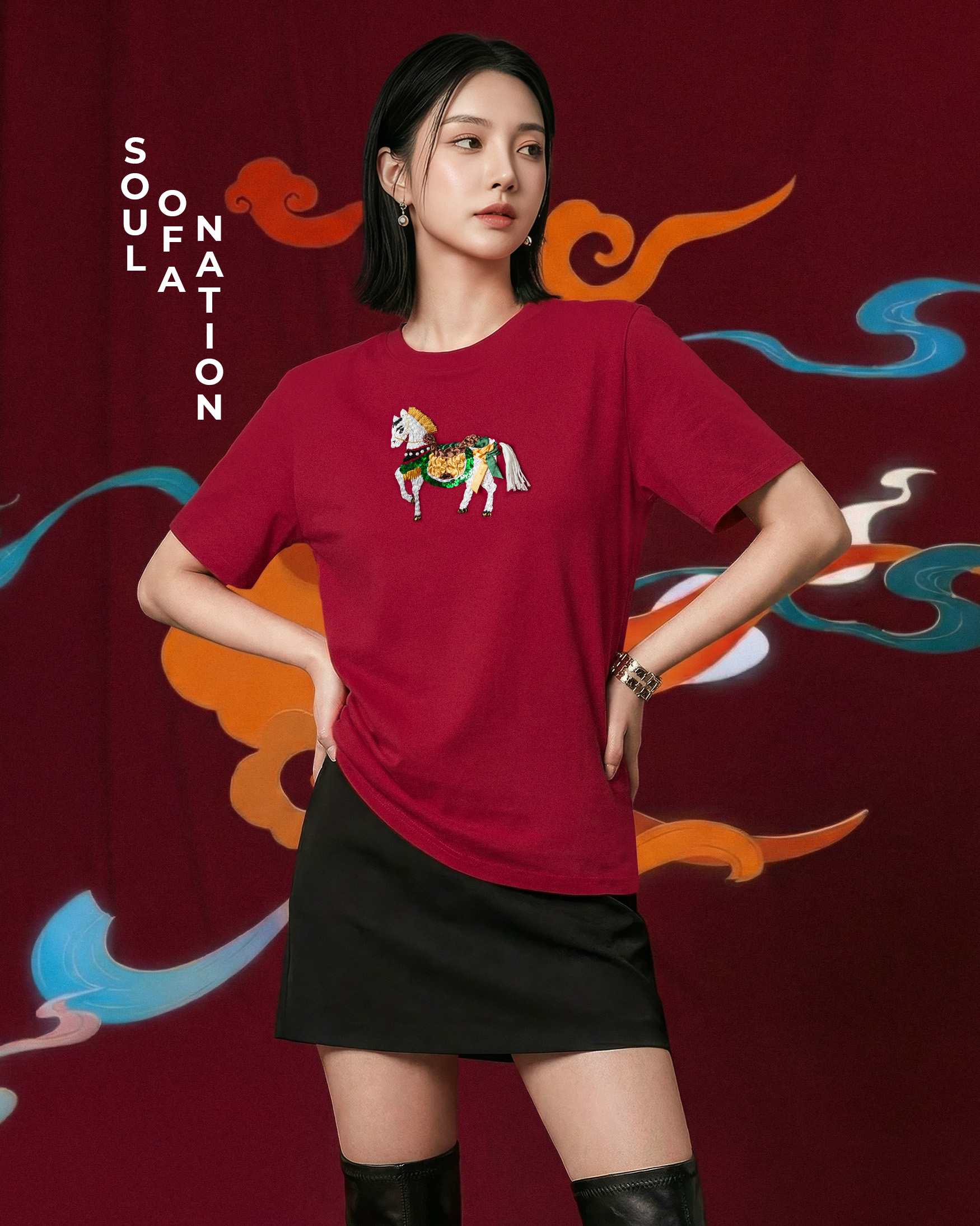 Áo Thun Thêu Ruy Băng Thủ Công - Bạch Mã Đông Hồ Ưu đãi đặc biệt