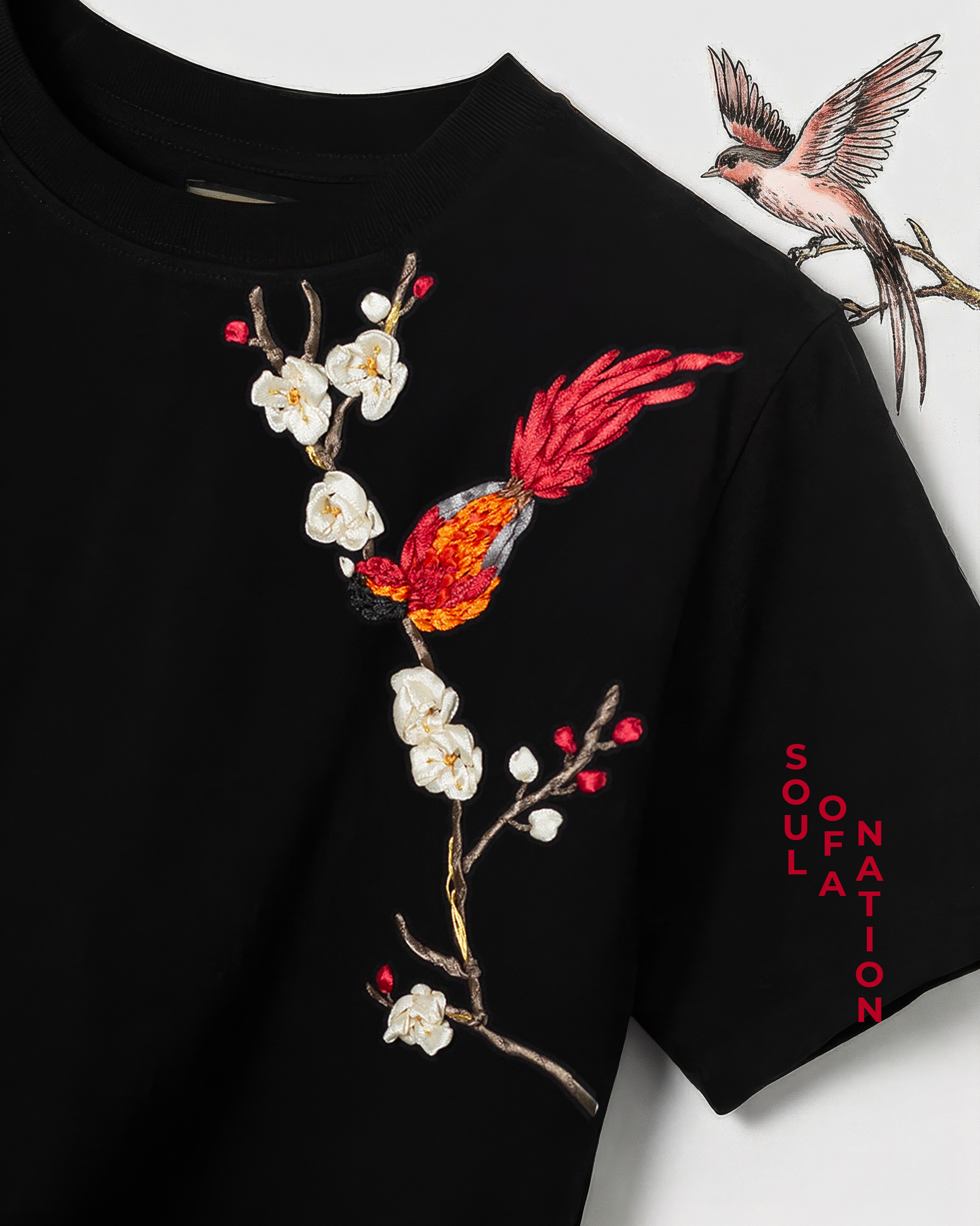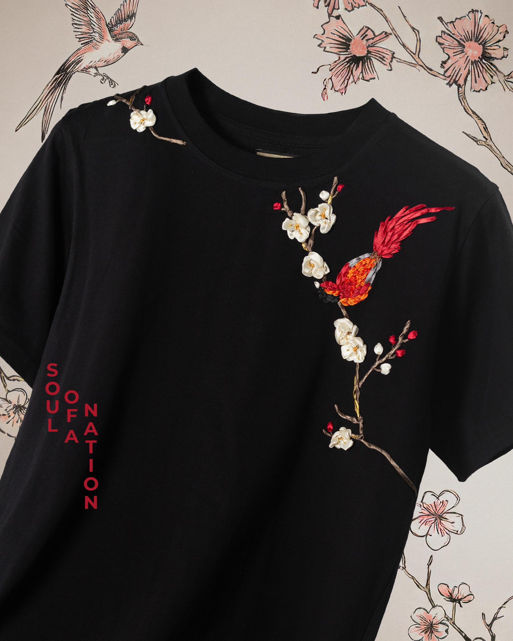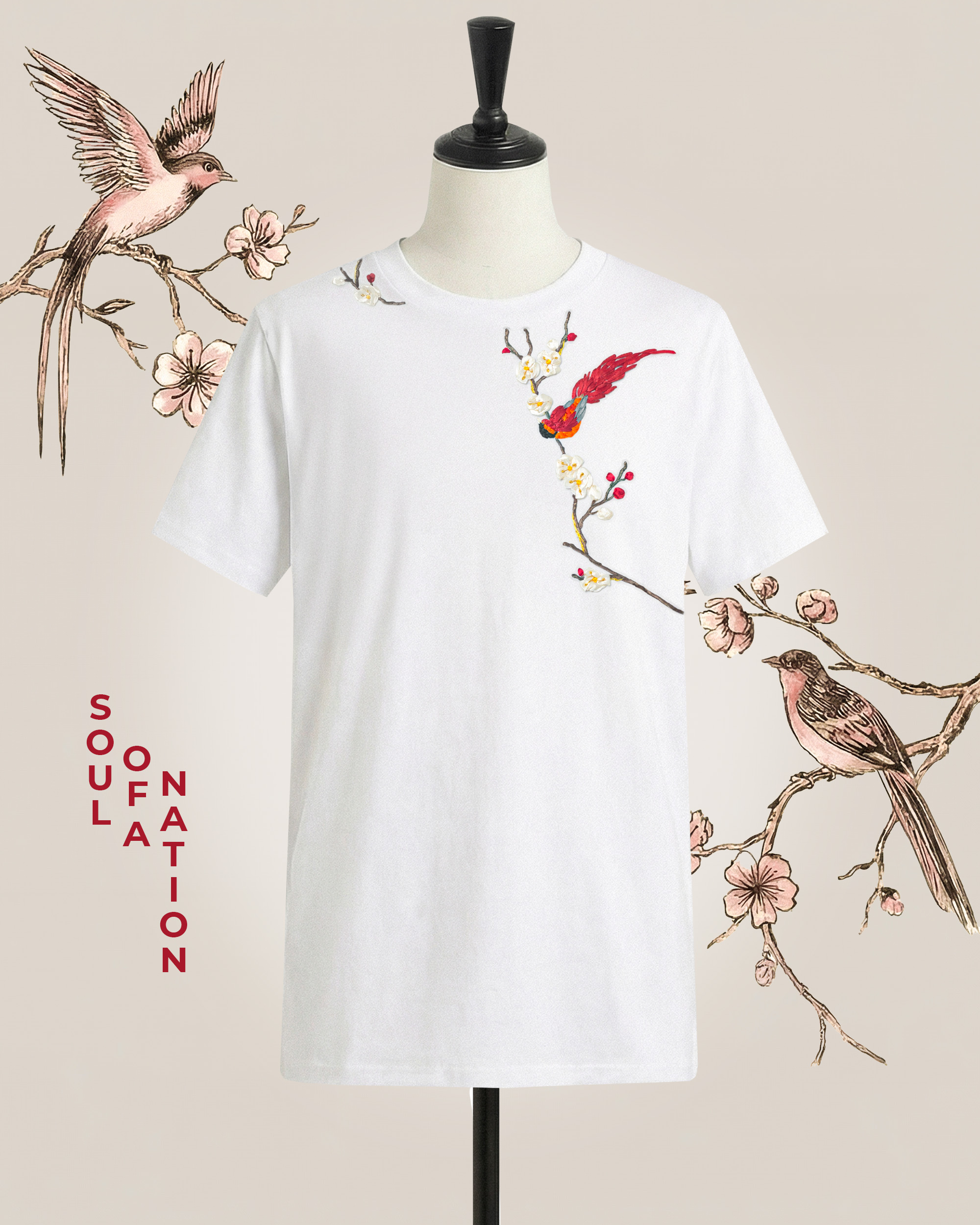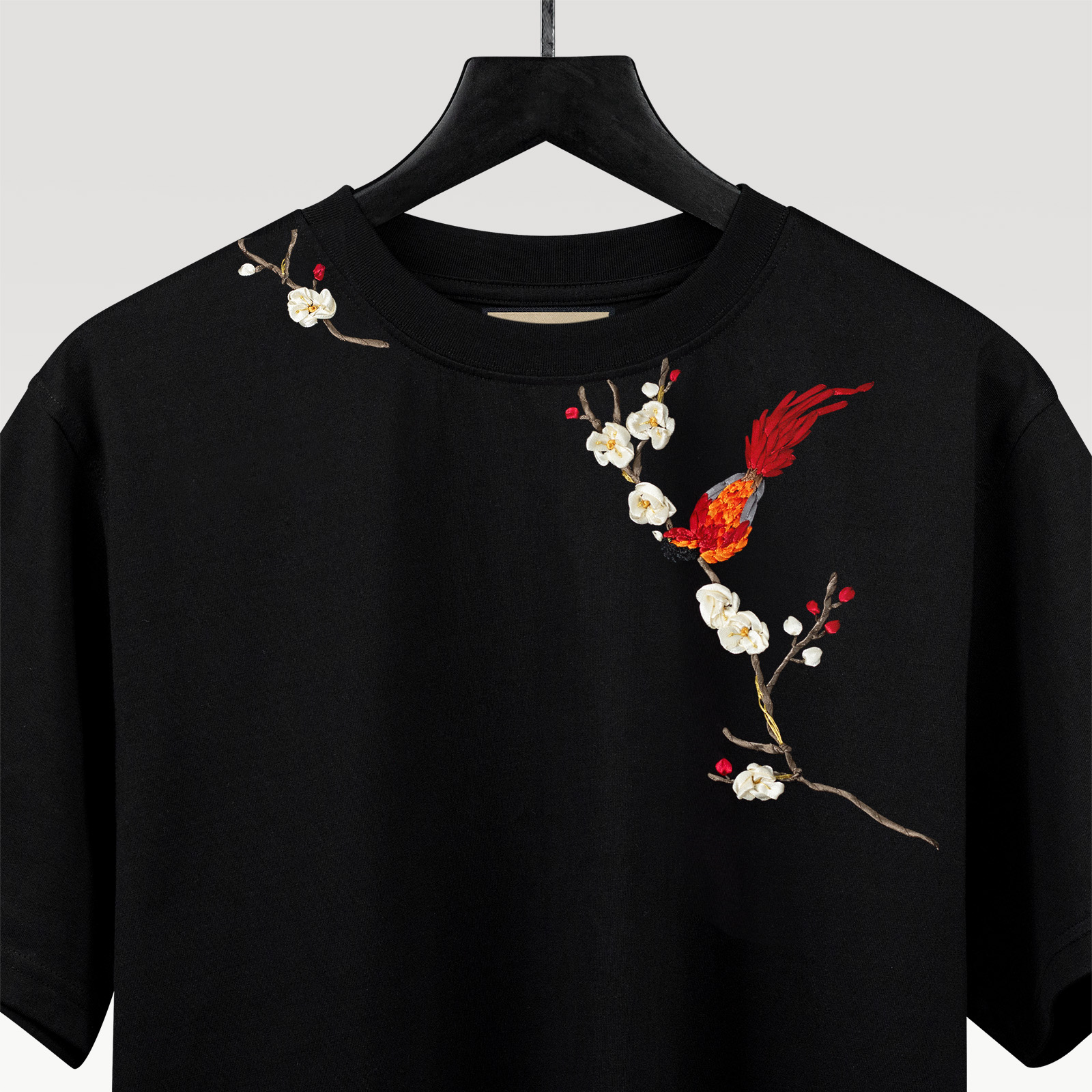 Áo Thun Thêu Ruy Băng Thủ Công - Phụng Điểu Thưởng Mai