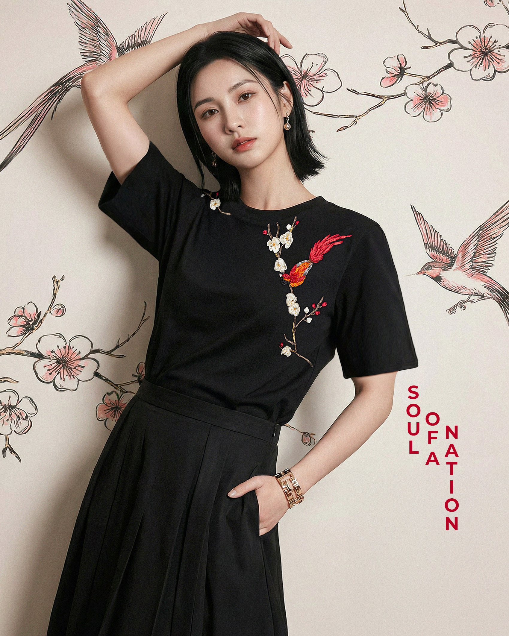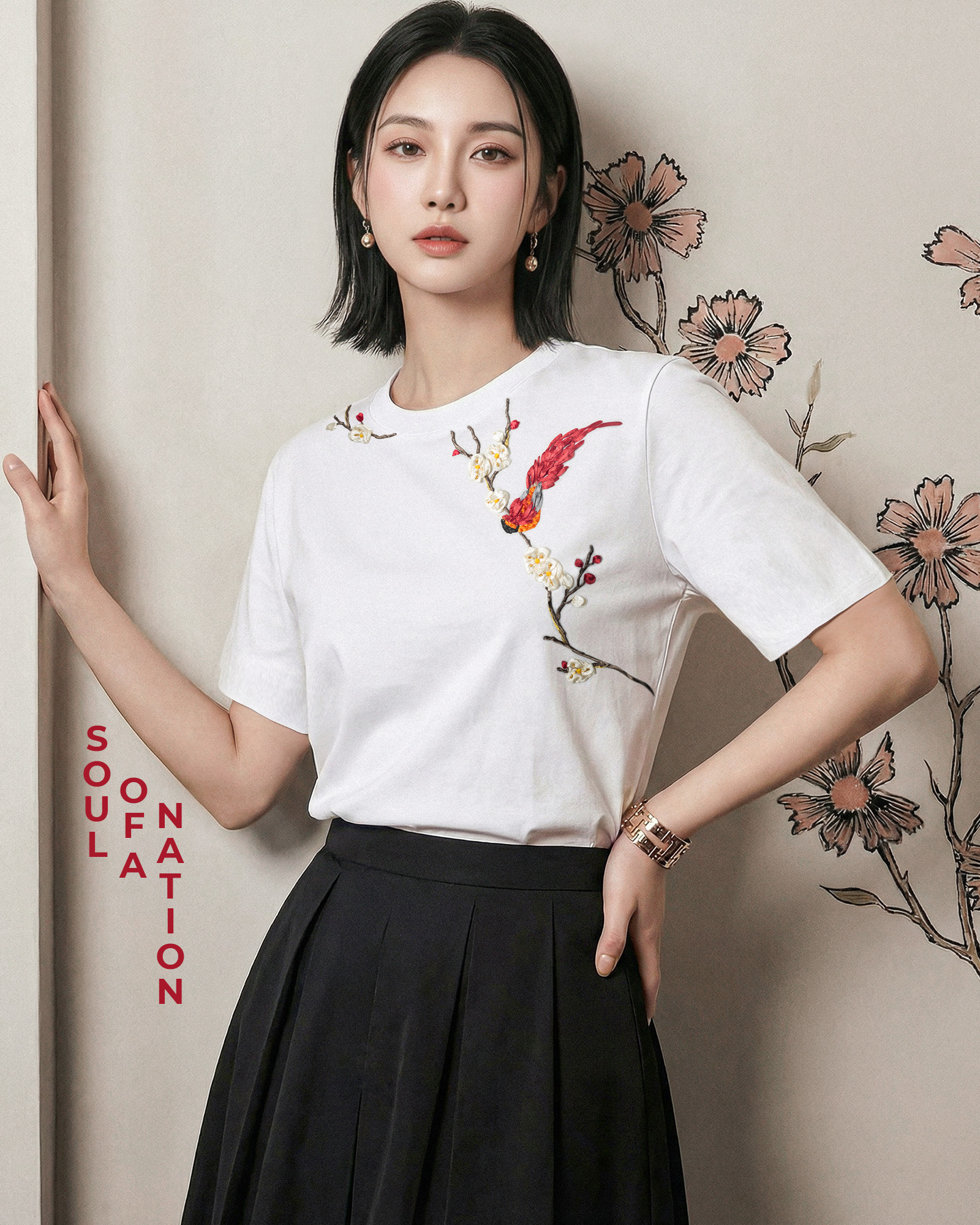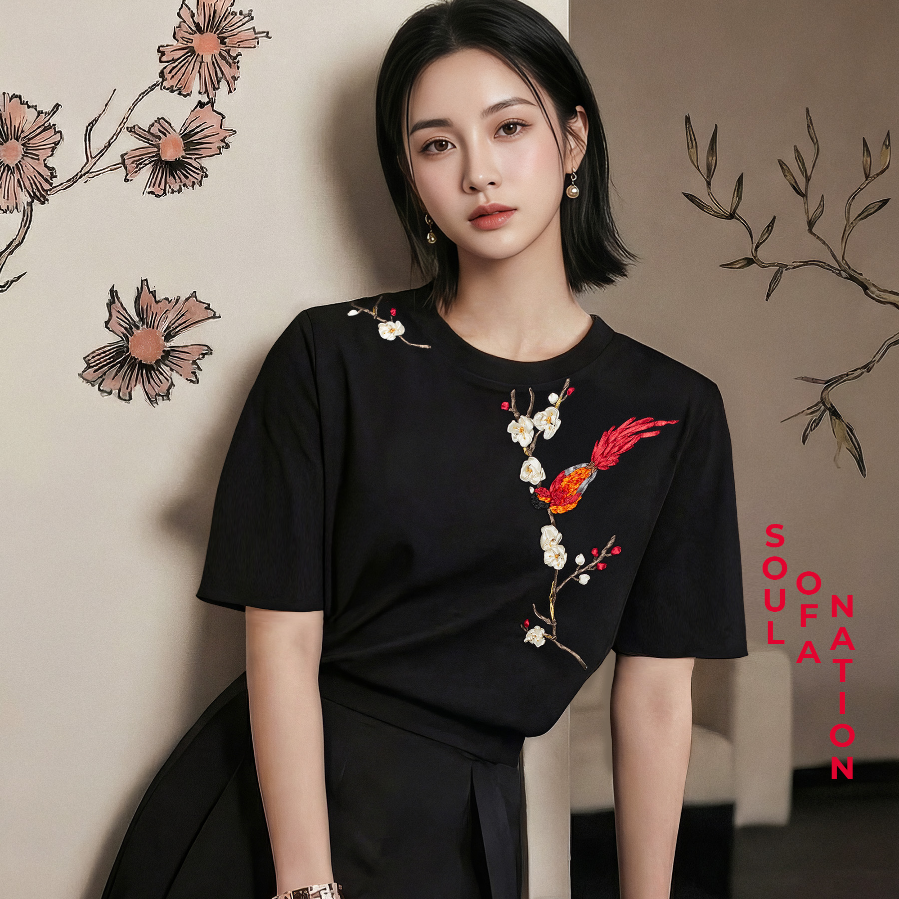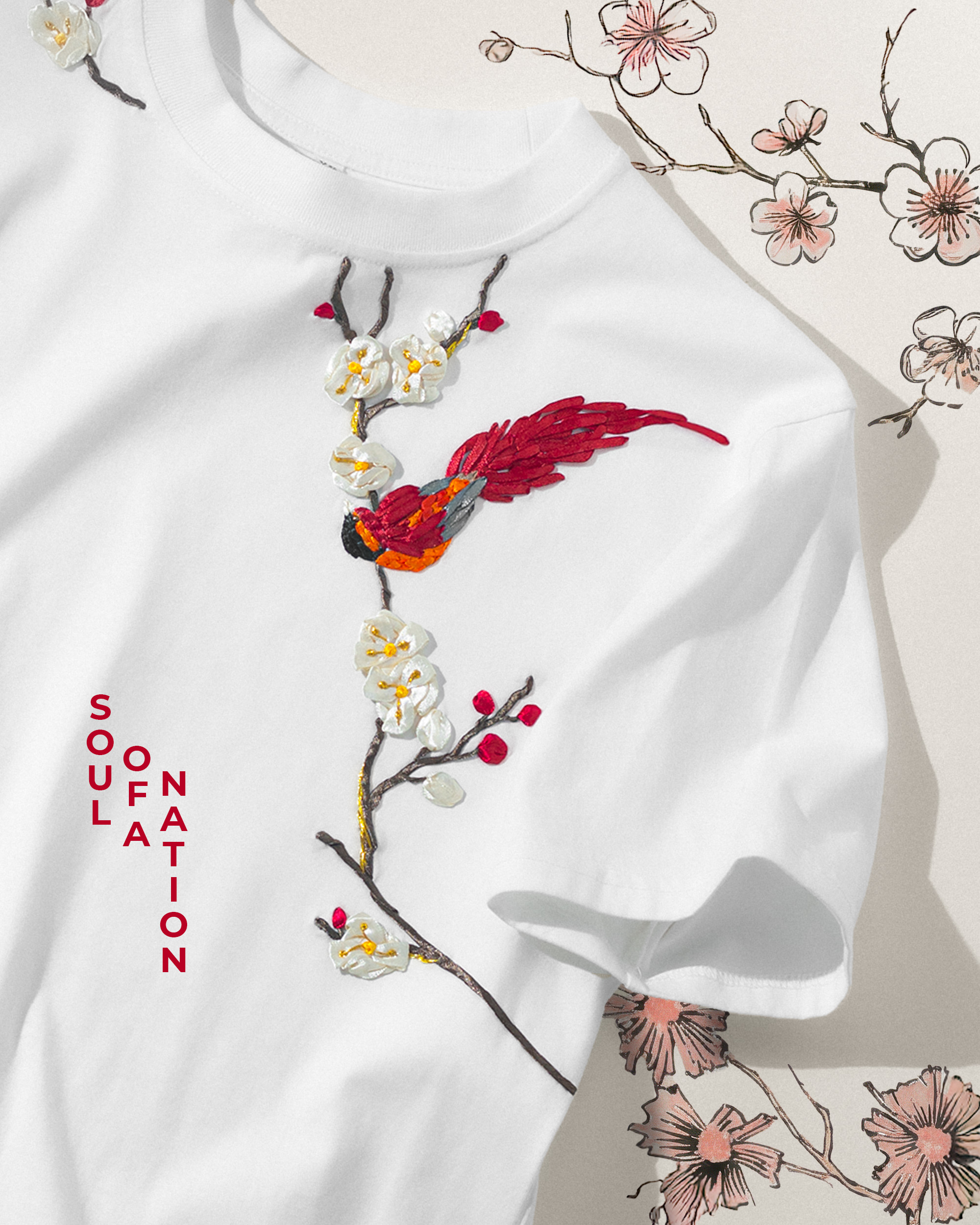 Áo Thun Thêu Ruy Băng Thủ Công - Phụng Điểu Thưởng Mai