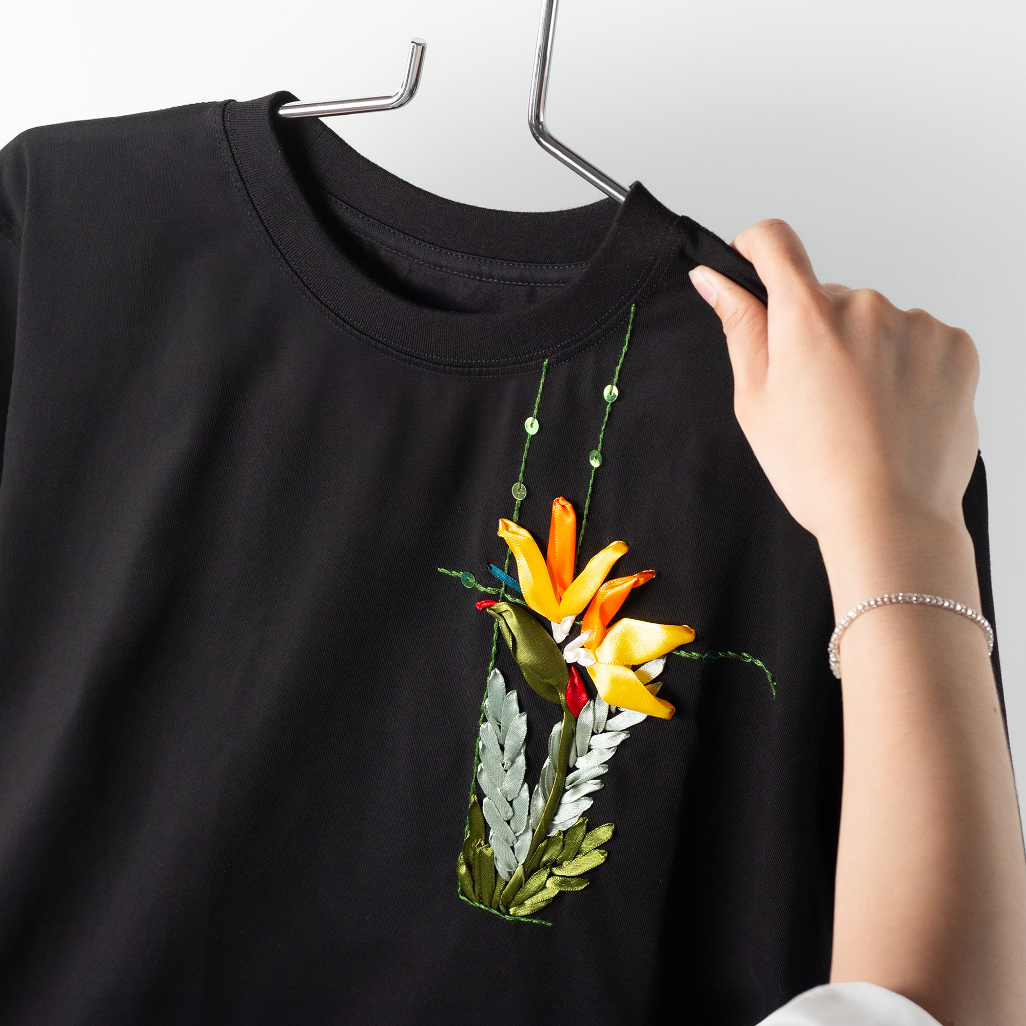 Áo Thun Thêu Ruy Băng Thủ Công - Hoa Thiên Điểu
