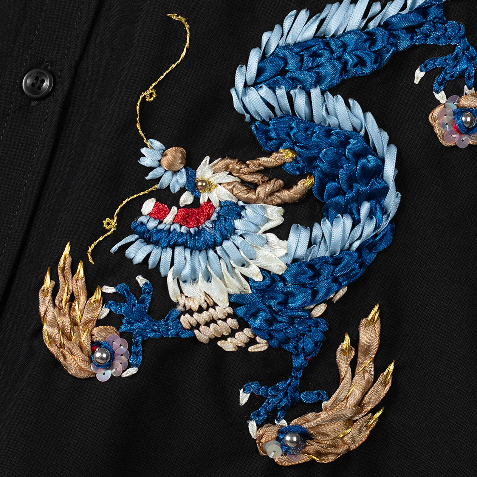 Kỹ thuật thêu hoàn toàn bằng thủ công, sử dụng chất liệu chính là ruy băng lụa để tạo hình thiết kế, tạo ra các họa tiết nổi sang trọng & tinh tế trên bề mặt vải, đòi hỏi sự tỉ mỉ và nhiều thời gian hoàn thiện. Đây cũng chính là kĩ thuật thêu cao cấp nhất tại SoN.
