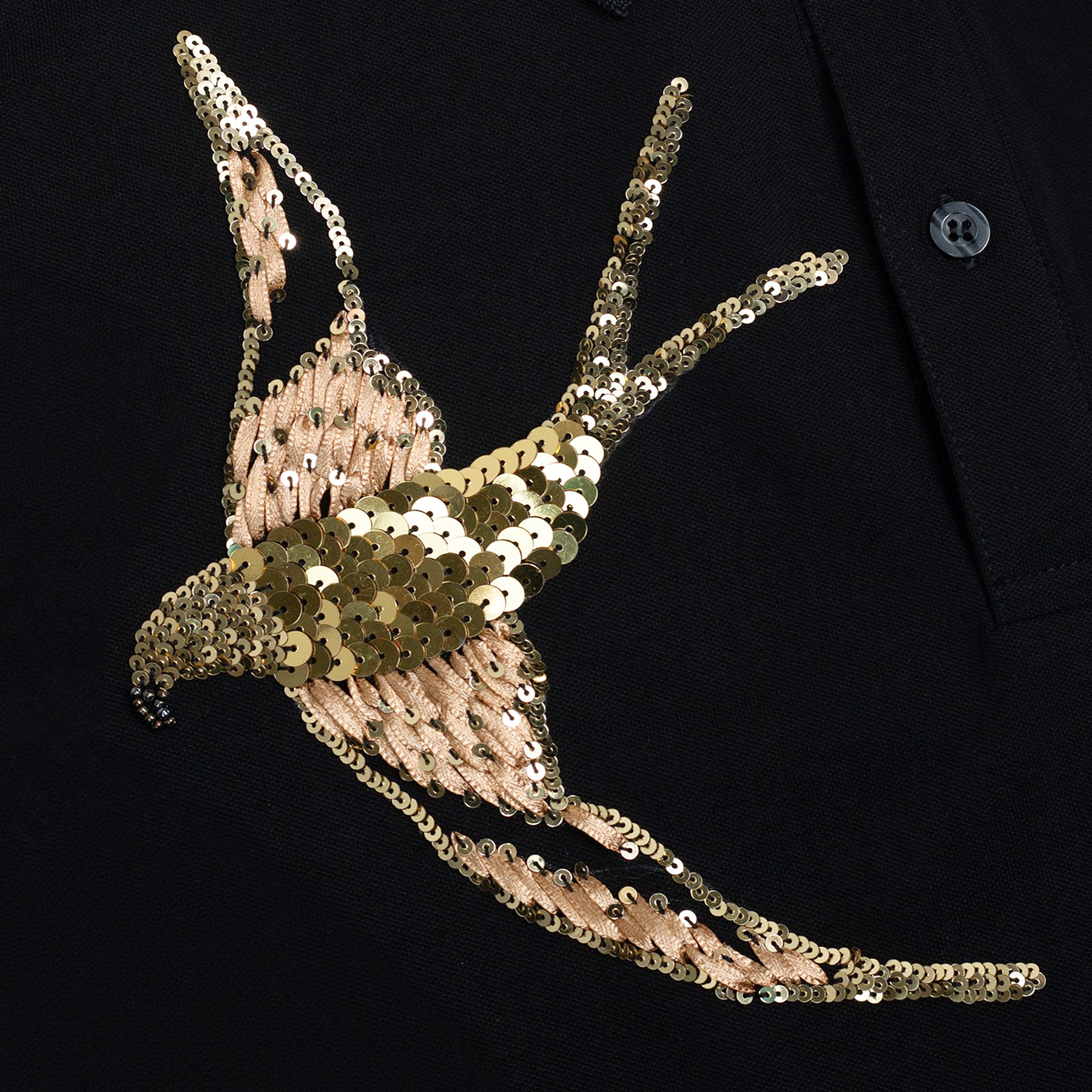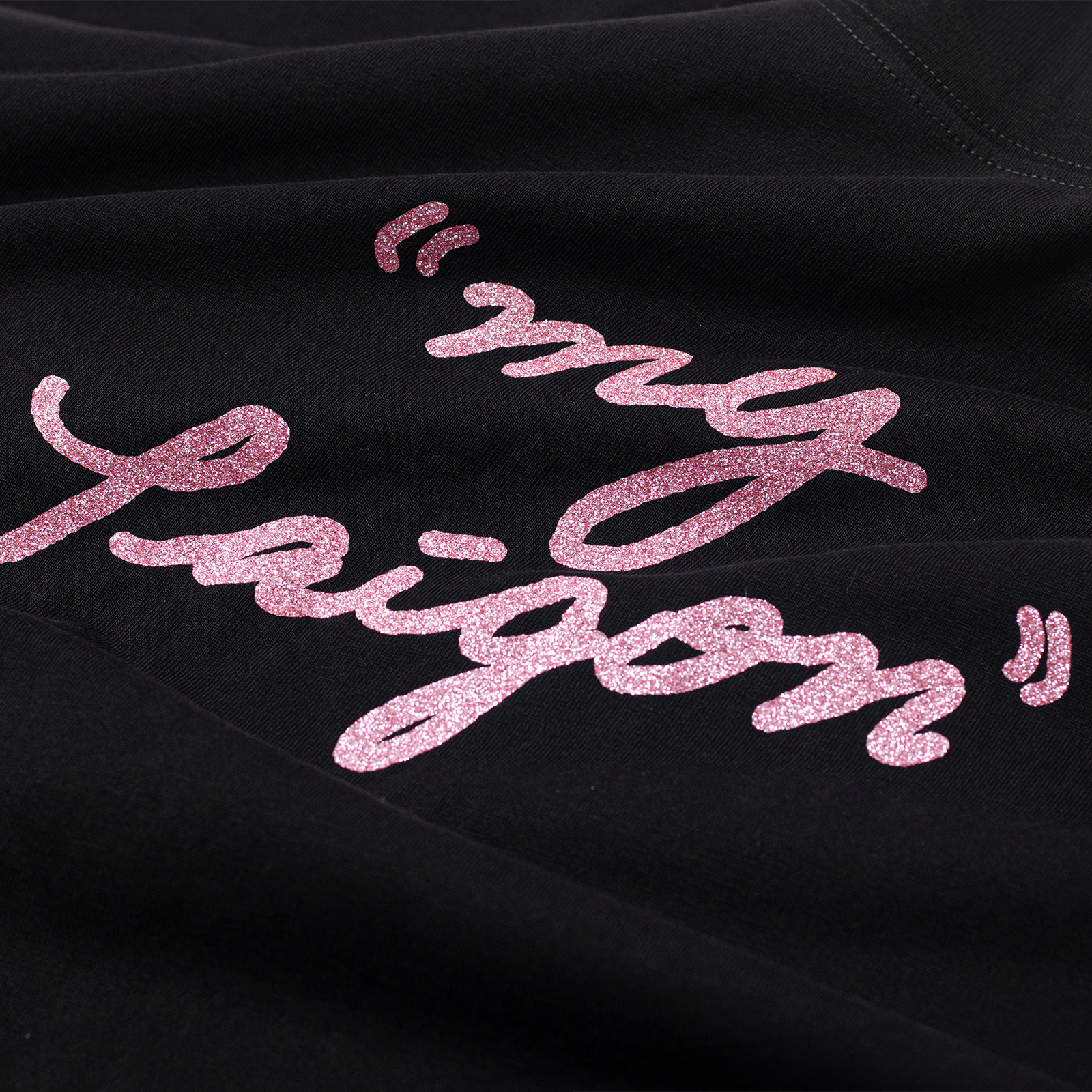 Hình in được phủ lên trên một lớp kim tuyến đơn sắc để tạo nên những họa tiết lấp lánh, bắt sáng khi có ánh sáng chiếu và. Hình in không bong tróc, đảm bảo tiêu chuẩn giặt máy.