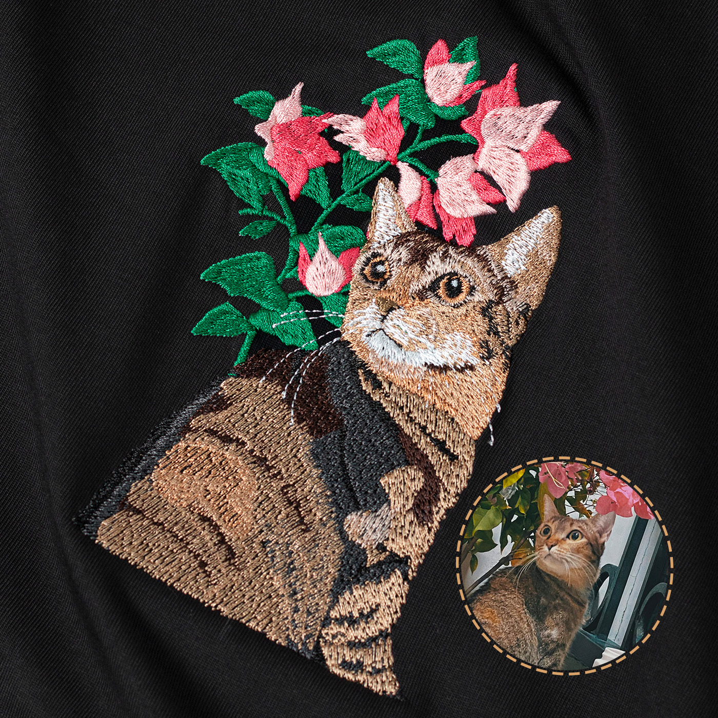 Kỹ thuật thêu mô phỏng lại hình ảnh thực tế như chân dung, hình chụp, ... một cách chân thật, tái hiện lại độ sâu, màu sắc, ánh sáng một cách gần giống nhất. Đây là kĩ thuật thêu vi tính cao cấp nhất tại SoN, đòi hỏi sự tỉ mỉ trong việc thiết kế file thêu và mất nhiều thời gian để hoàn thiện.