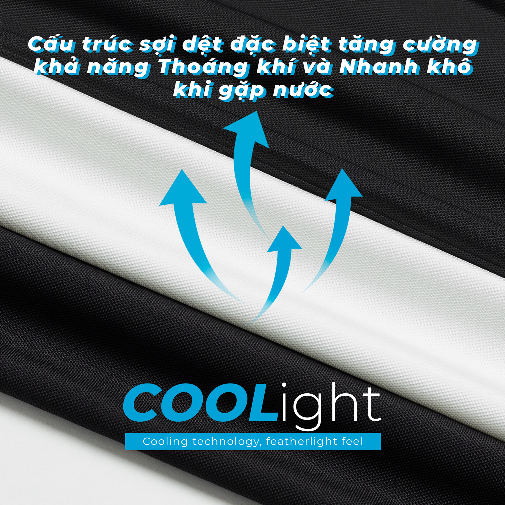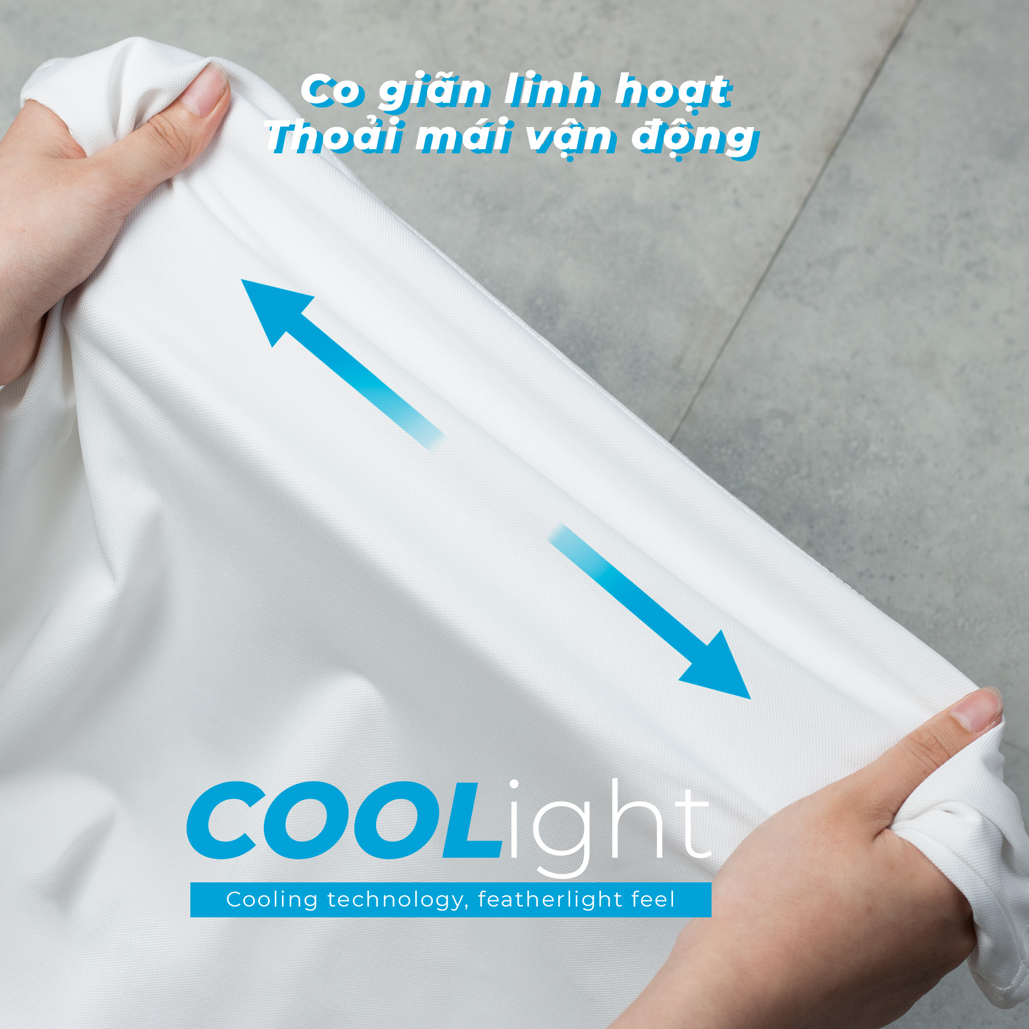 Vải COOLight là dòng vải cao cấp ứng dụng kỹ thuật làm mát chủ động, được phát triển từ các sợi dệt kỹ thuật cao, giúp tạo cảm giác mát lạnh ngay khi chạm vào. Với tiêu chí “Cooling Technique, Featherlight Feel”, dòng vải này mang đến sự khác biệt vượt trội trong mọi hoạt động thường ngày.