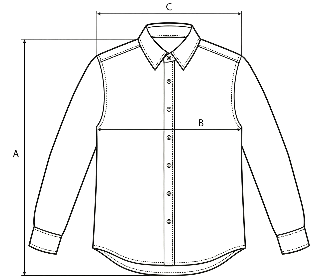 (A) Dài áo: Đo từ điểm cao nhất của vai xuống tà áo.