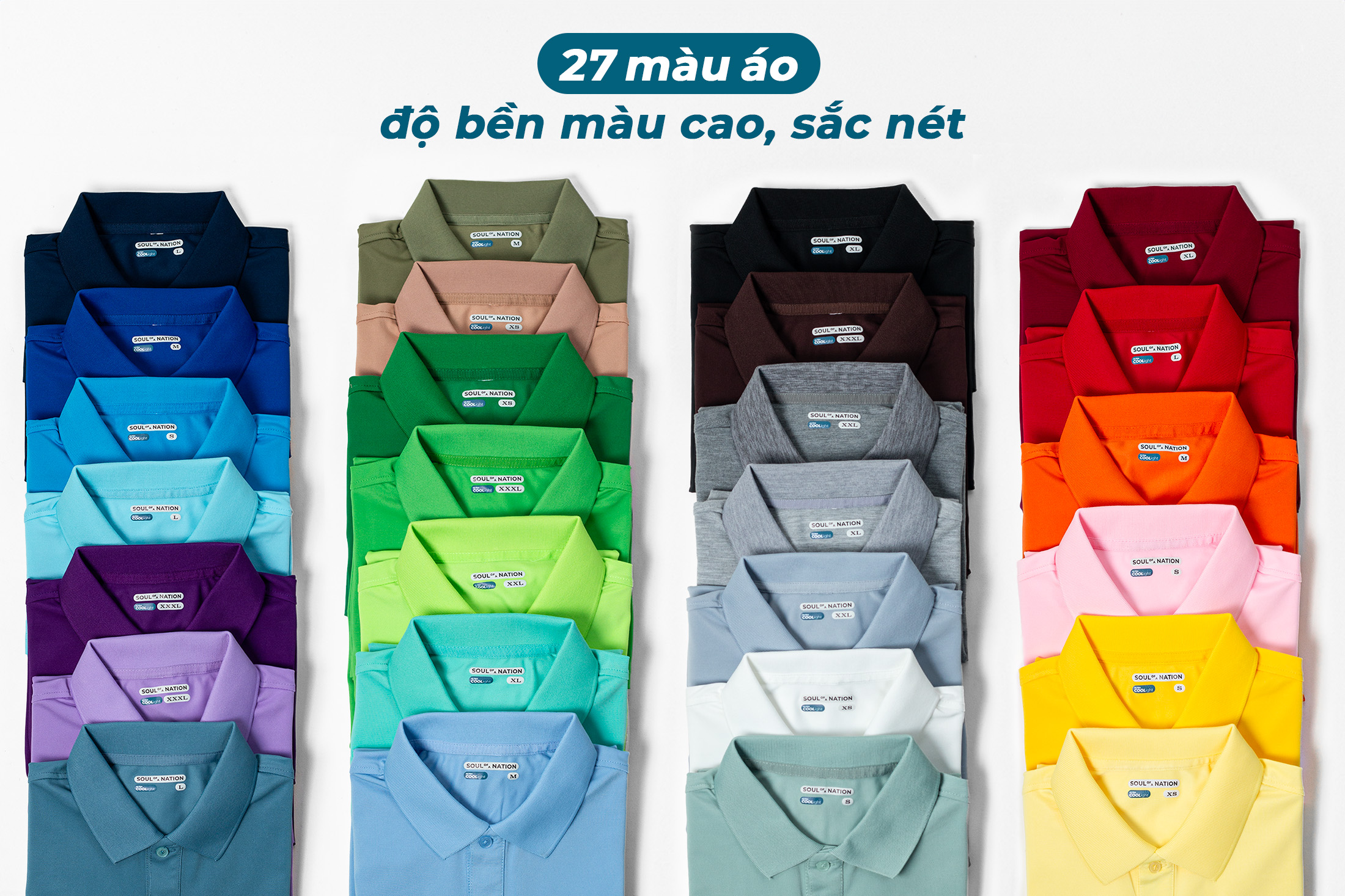 Hiện nay, Vải Ultra COOLight đã được ứng dụng rộng rãi trong dòng áo Polo đồng phục sản xuất theo yêu cầu tại SoN. Đây là lựa chọn lý tưởng cho doanh nghiệp, trường học, đội nhóm muốn kết hợp tính tiện dụng, sự thoải mái và phong cách chuyên nghiệp trong từng chi tiết. Hiện Soul of a Nation đang sở hữu bảng màu Ultra COOLight đa dạng với 27 màu sắc bền đẹp, sắc nét để khách hàng thoải mái lựa chọn màu đồng phục phù hợp với nhận diện thương hiệu của mình.