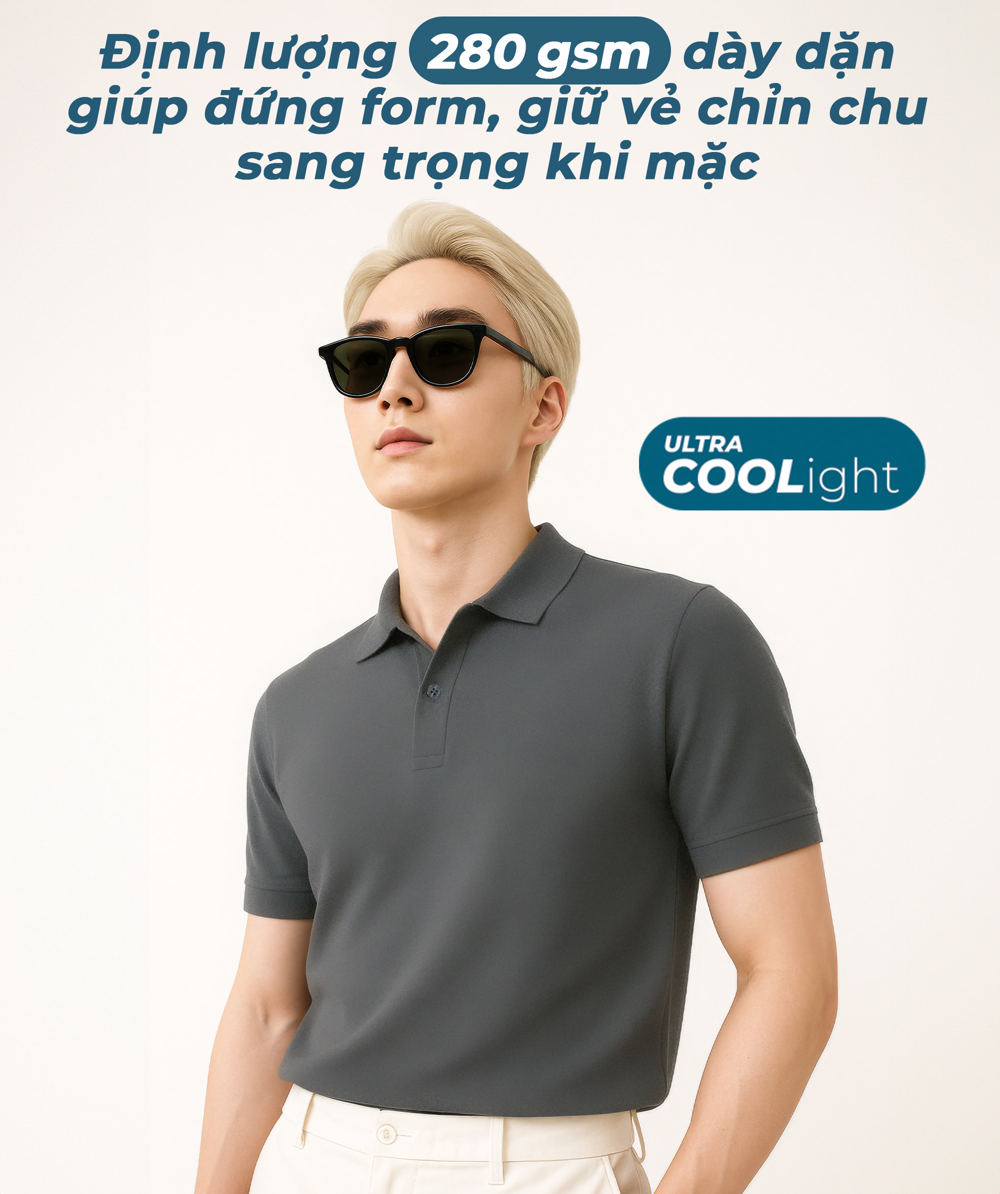 Điểm khác biệt dễ nhận thấy đầu tiên ở vải Ultra COOLight chính là định lượng 280 gsm dày dặn hơn vải COOLight có định lượng 245 gsm giúp áo đứng form hơn, giữ vẻ chỉn chu sang trọng khi mặc trên người.