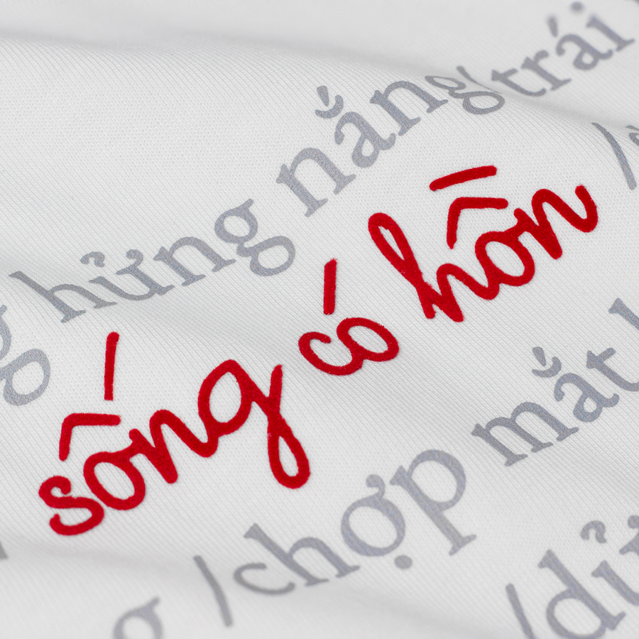 - Hình in kết hợp kỹ thuật in màu + Khắc laser trên vải nhung đỏ. Đảm bảo tiêu chuẩn giặt máy không bong tróc.