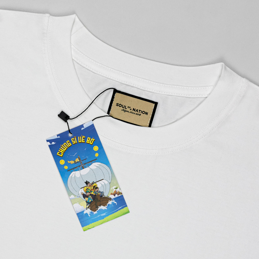 Slogan "CHỨNG SĨ VỀ BỜ" được in chất lượng cao, đáp ứng tiêu chuẩn giặt máy đi cùng với màu sắc nổi bật, sắc nét.