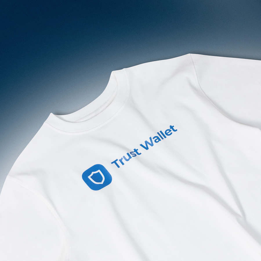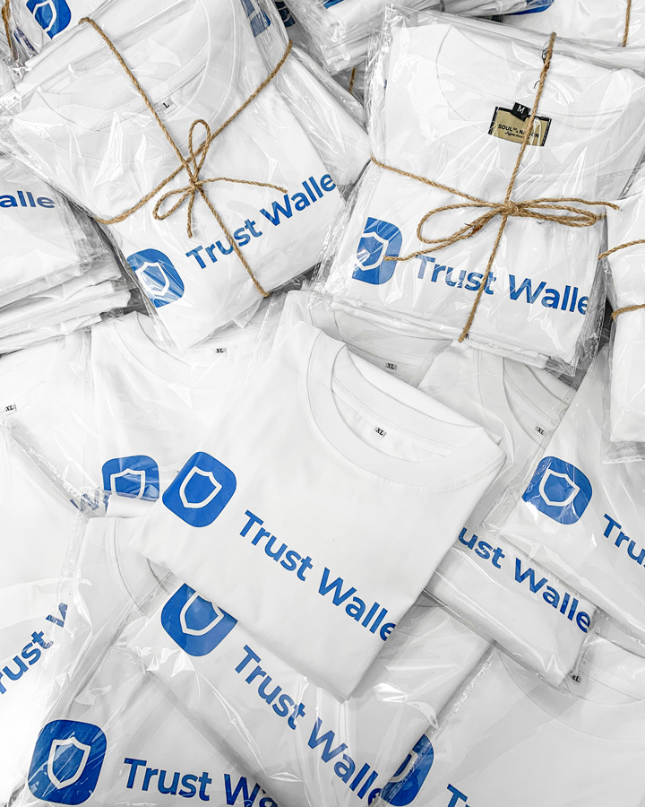Áo thun cao cấp in ấn theo thiết kế riêng của Trust Wallet.